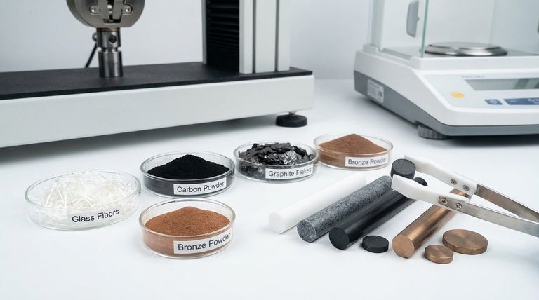 強化ポリテトラフルオロエチレン(RPTFE)で最も一般的に使用される充填材は、ガラス繊維、カーボン、グラファイト、青銅です。これらの添加剤は交換可能ではなく、それぞれが、ベースポリマーの固有の弱点である、荷重下での耐摩耗性や耐変形性など、バージンPTFEの特定の特性を体系的に向上させるために選択されます。