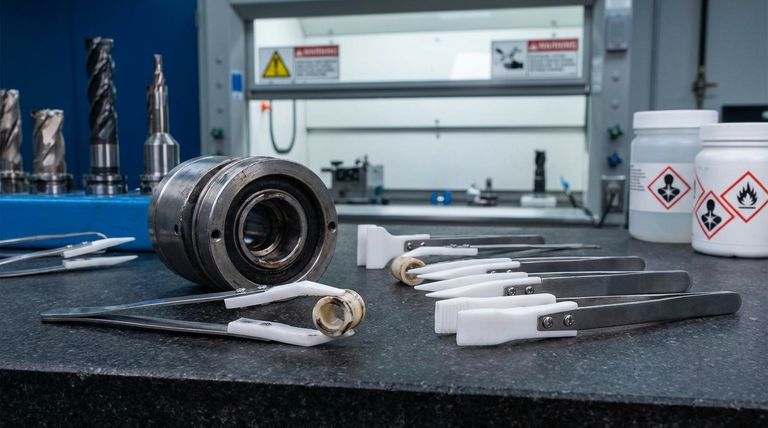 PTFEの低い融点は、切削工具の摩擦熱で容易に溶ける可能性があり、結果として表面仕上げが悪化し、工具が損傷します。これは、極めて鋭利で特殊な切削工具、特定の形状、そしてプロセスの熱を管理するためのクーラントの適用を必要とします。